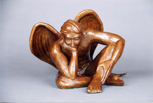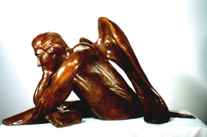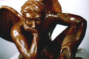 Here he sits pondering the fate of man.